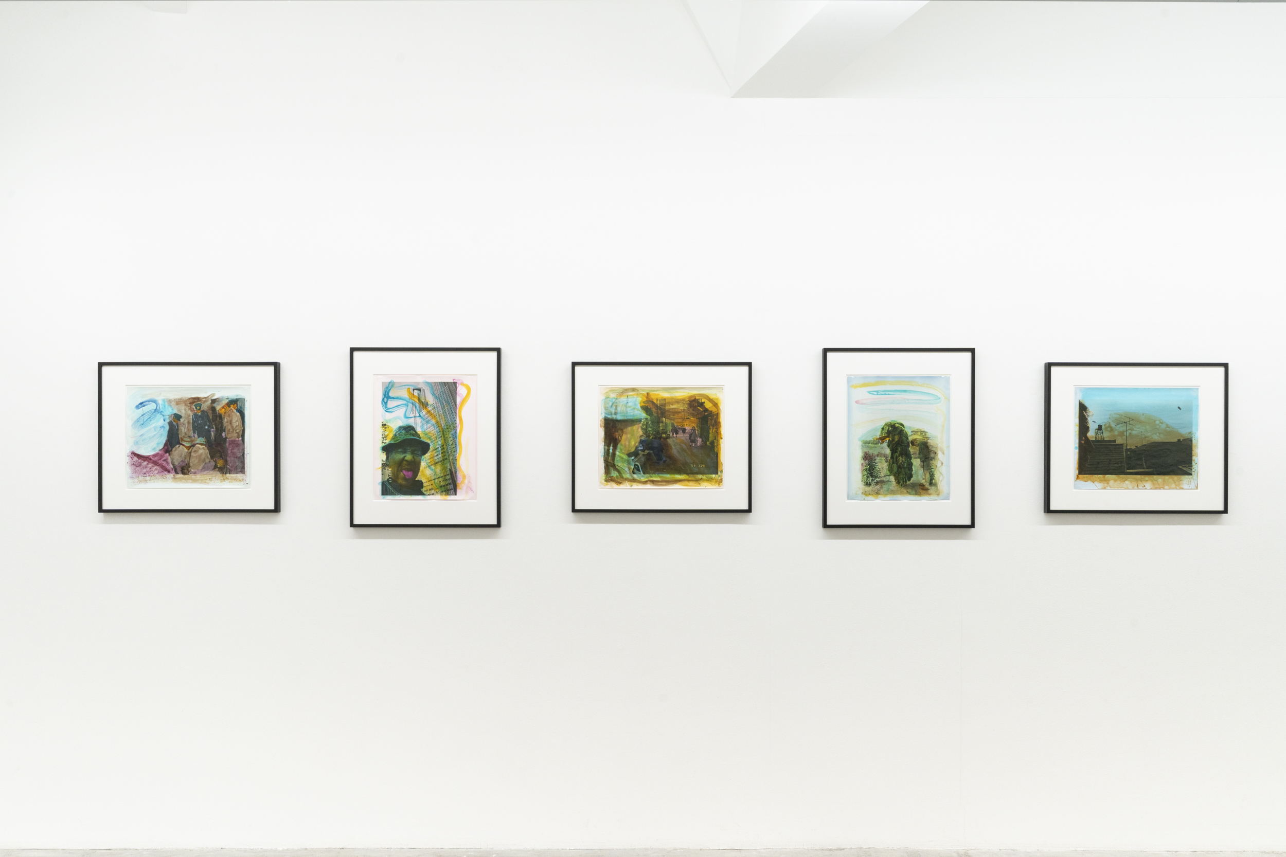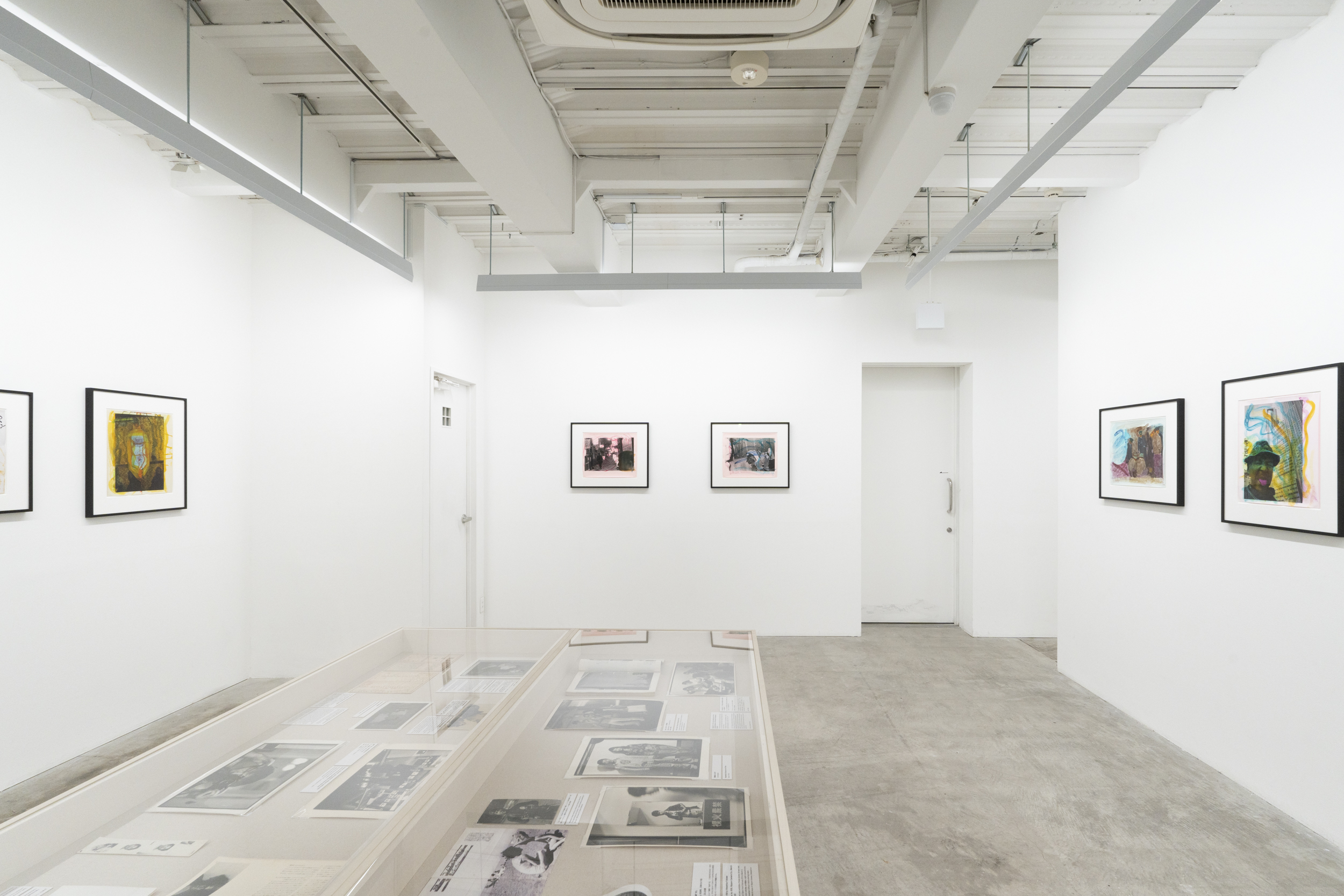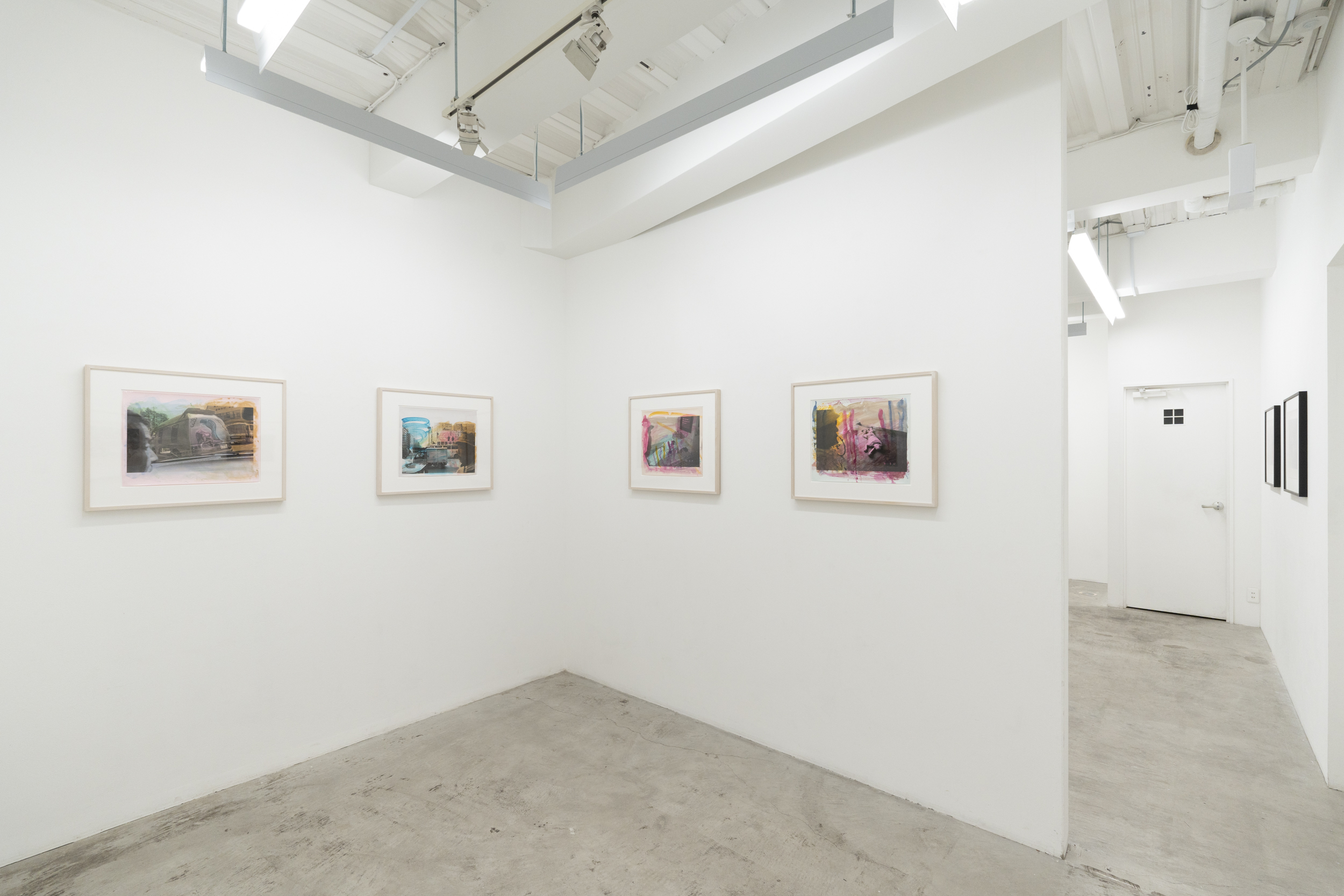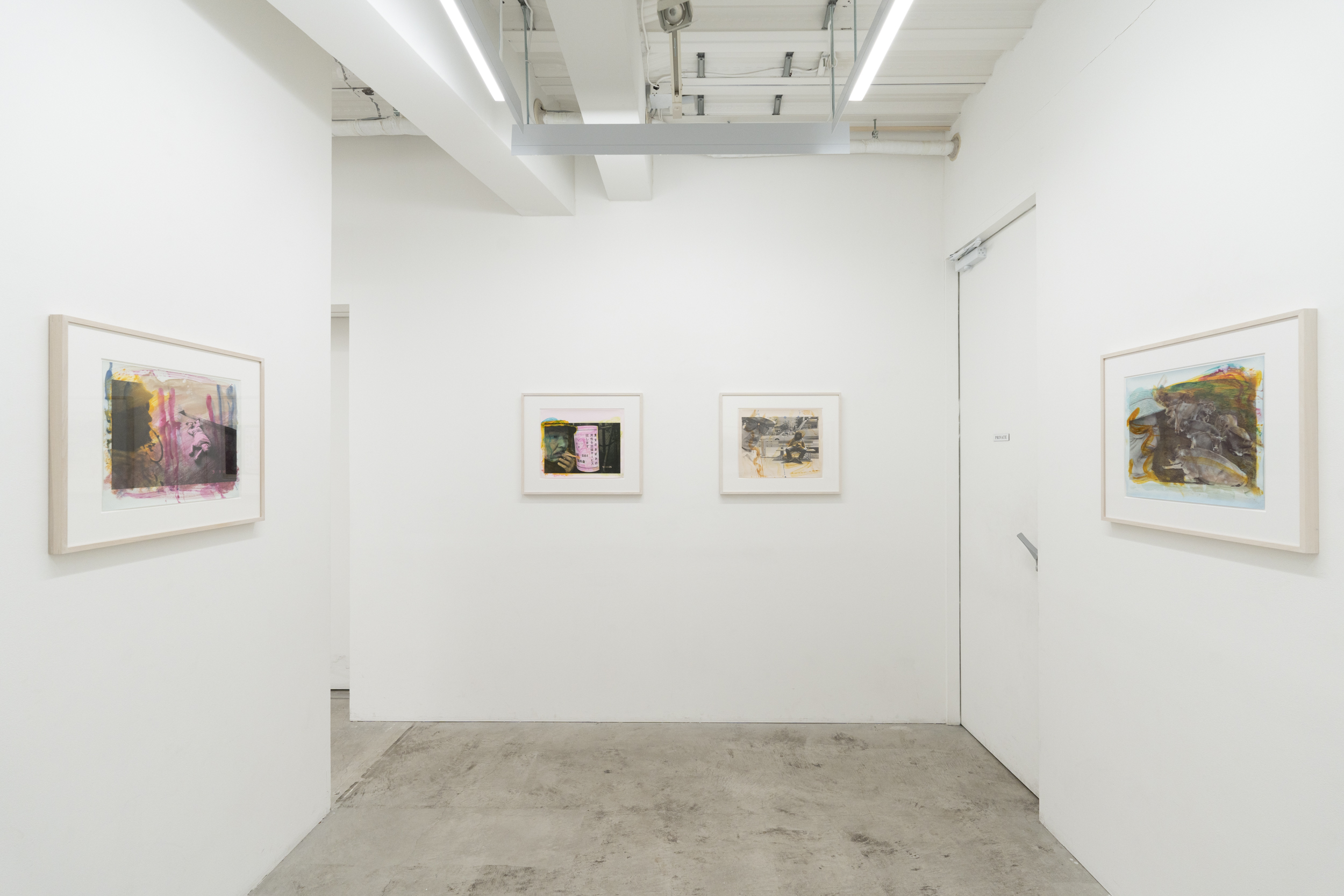 《私景’92》ではコニカビッグミニを使い、ノーファインダーで自分の顔や手、足をフレームにいれて撮影しました。その後、銀塩プリントの上から水彩絵の具で着彩、とくには言葉を添えたりして完成させています。プリントの上を縦横無尽に走り回る様々な色のストロークは、現実の風景に自身の内部から放射する衝動を重ね、描いているようにも見えます。街の路上や風景を撮影したという意味では80年代に発表された《歩く眼》に近いのですが、そこに自分の顔など身体が写しこまれているため、「見る-見られる」「撮影者-被写体」の関係が錯綜しています。さらに、着彩するときの身振りが加わることで、幾重にも重なった深瀬の眼差しと身体が見るものを揺さぶる作品群です。本展では特にこれらの着彩された写真群で展覧会を構成致します。